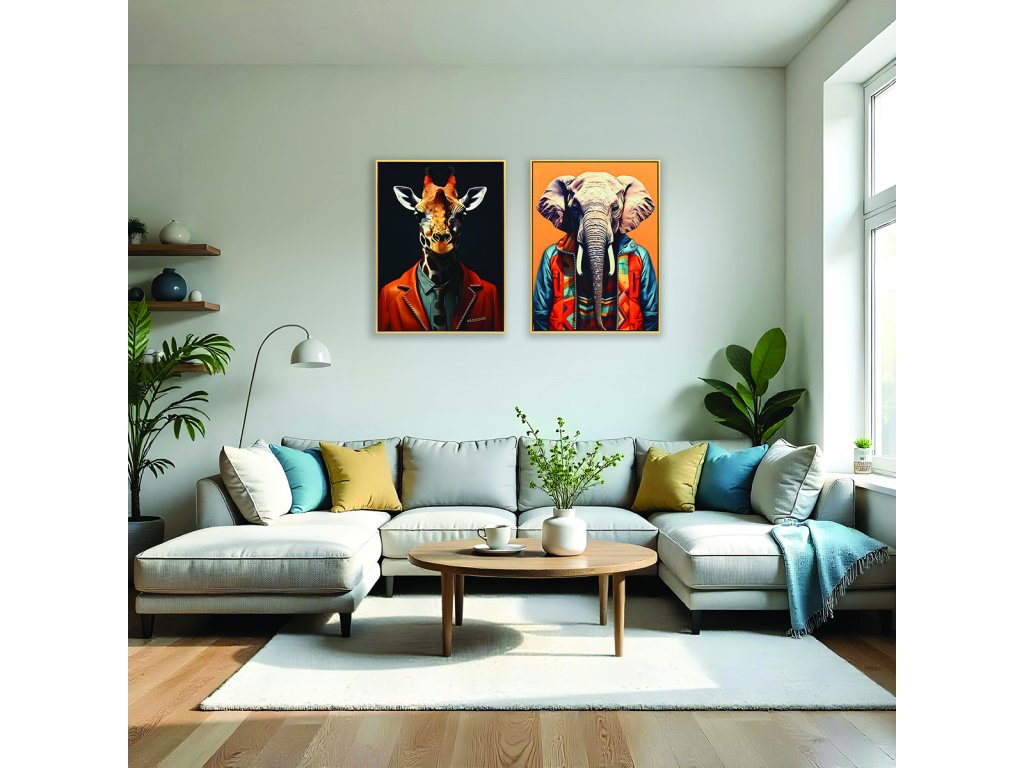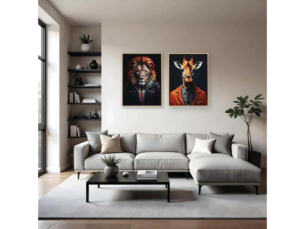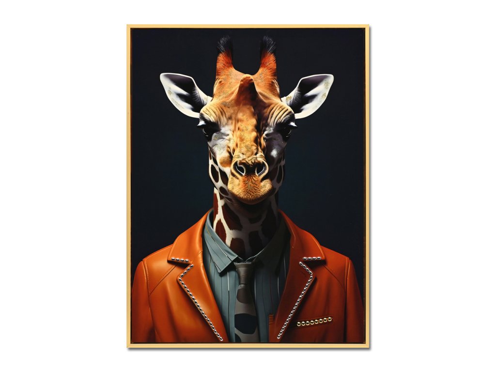 Obraz „Elegantní žirafa“ je výjimečným propojením zvířecí elegance a lidského módního stylu.