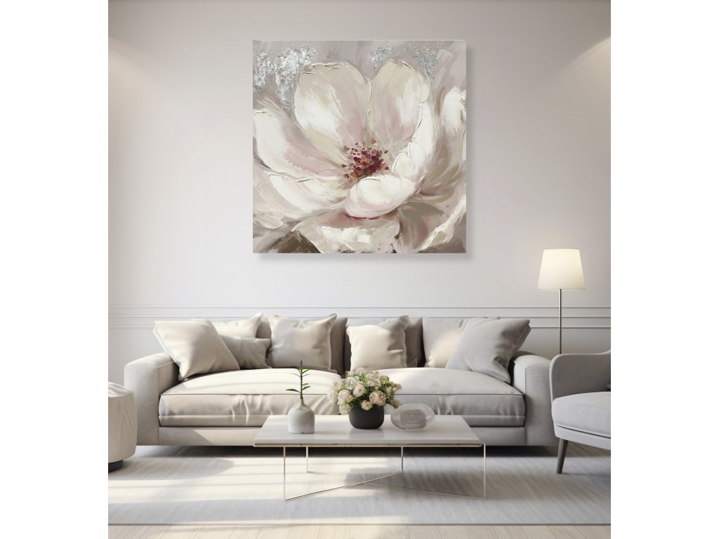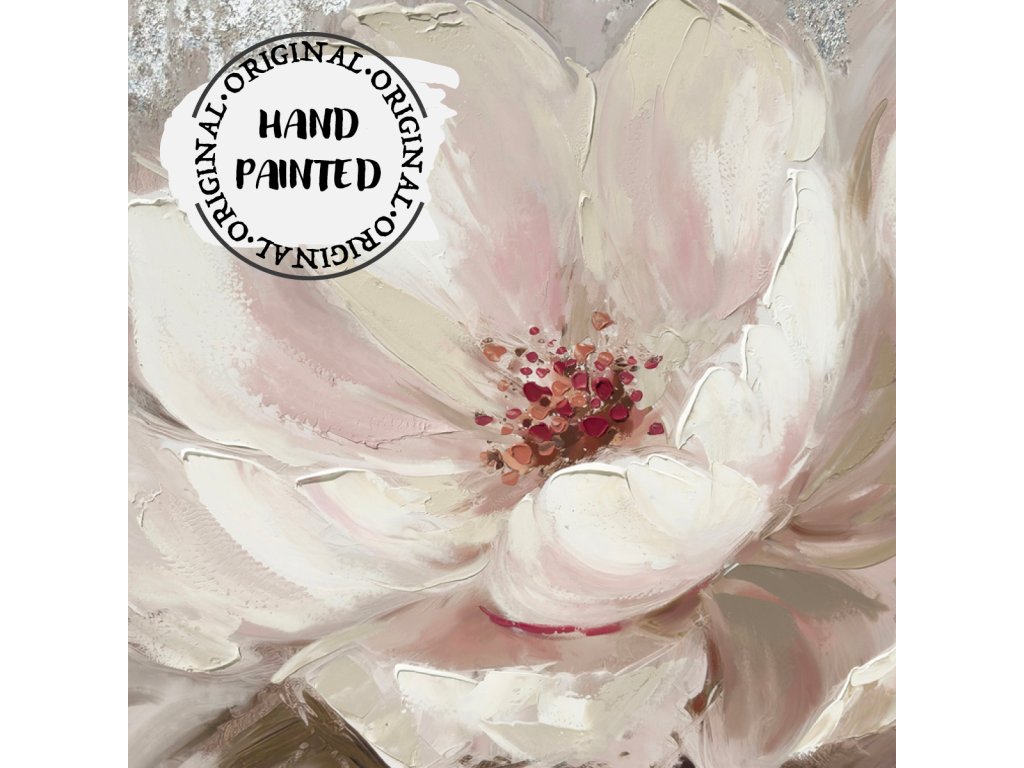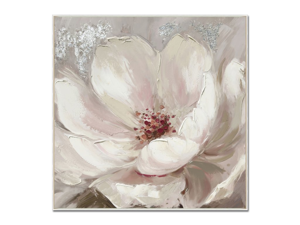Malířské plátno je napnuté na masivní dřevěný rám a navíc vsazené do moderního zlatého plastového rámu.