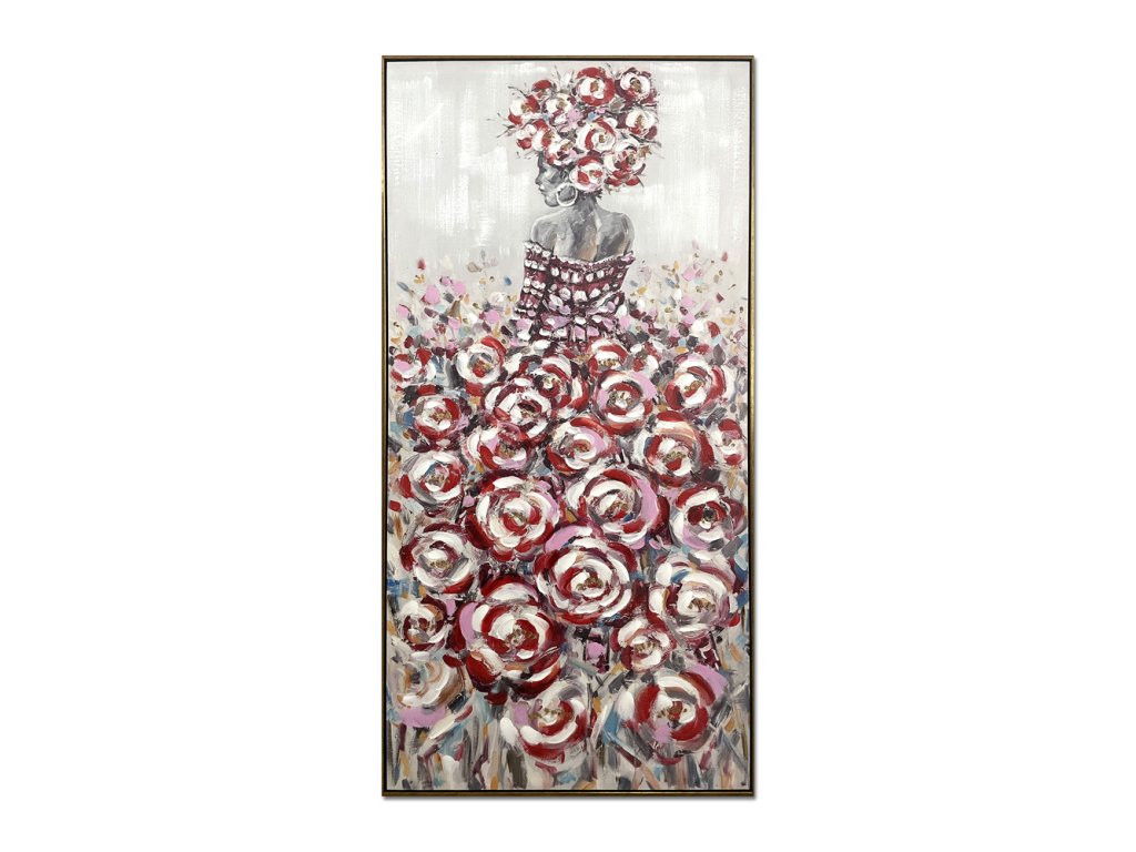 Tento originální ručně malovaný obraz zobrazuje siluetu ženy zahalenou v moři květin, které se stávají součástí její postavy i osobnosti.