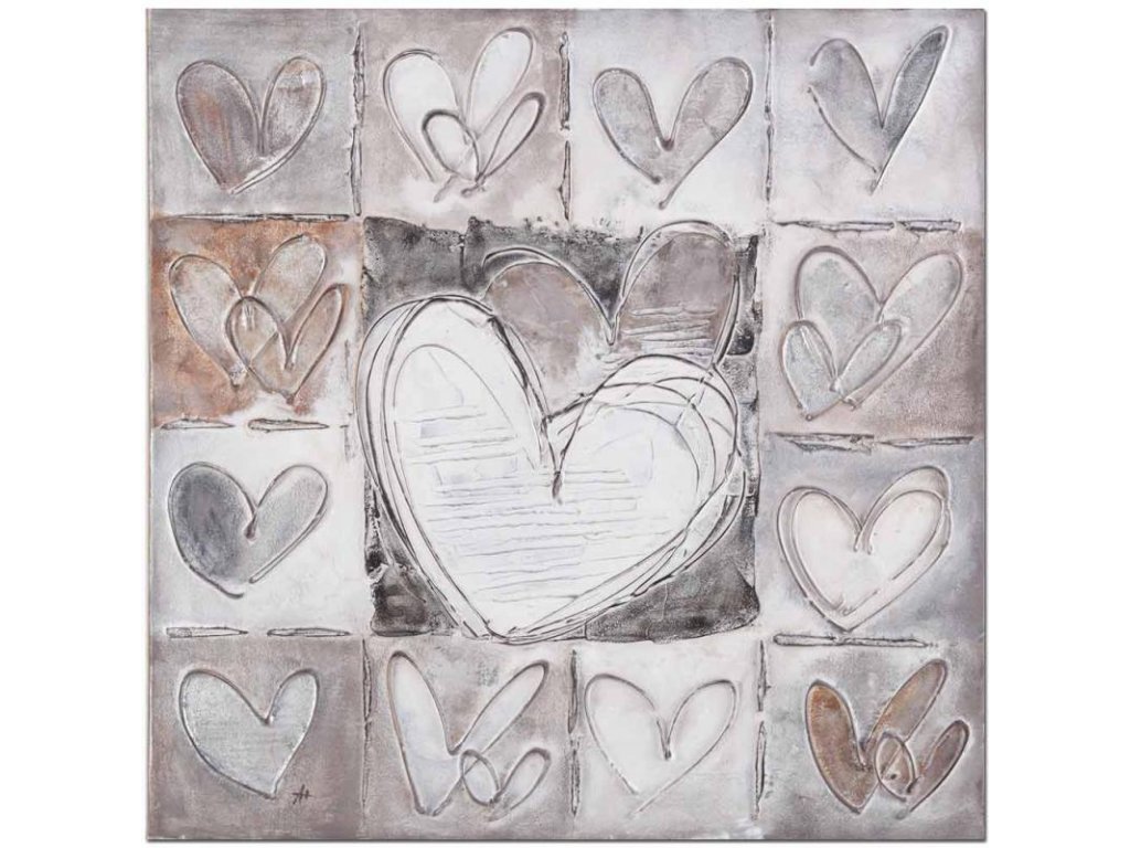 Jednodílný ručně malovaný obraz ve světlých tónech s motivem srdíček.