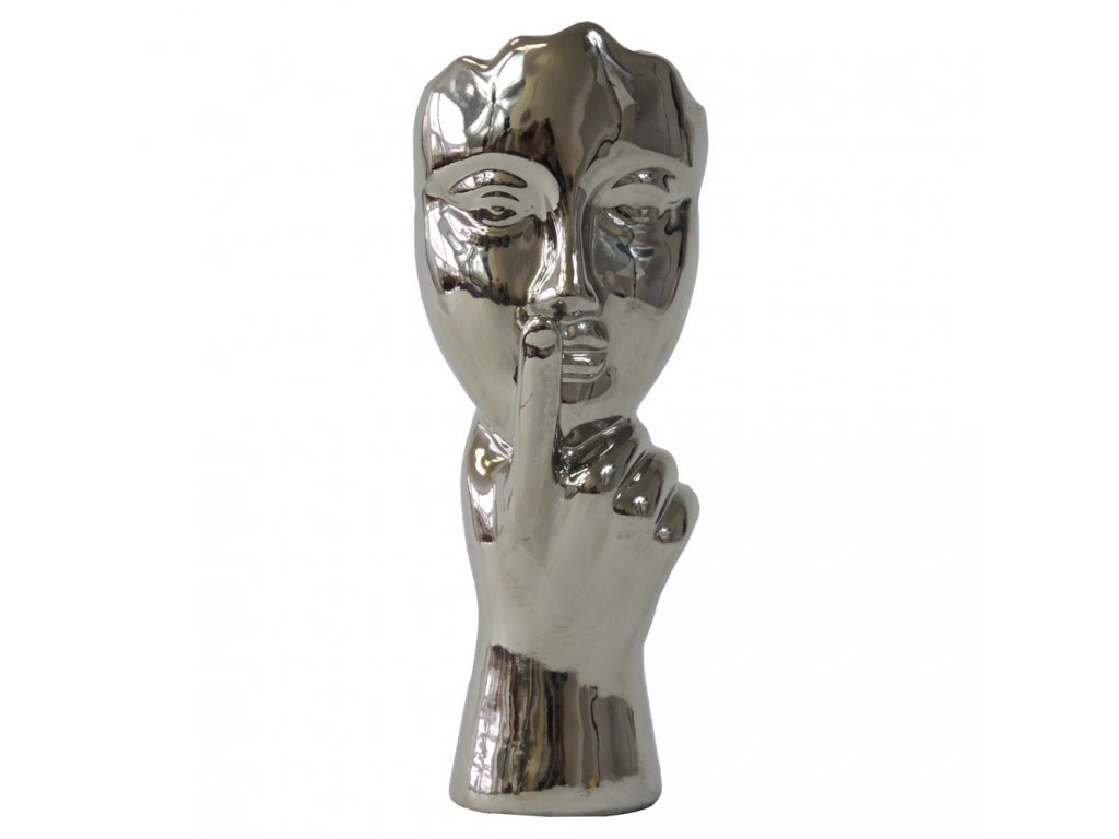 Keramická dekorace ve stříbrné barvě.