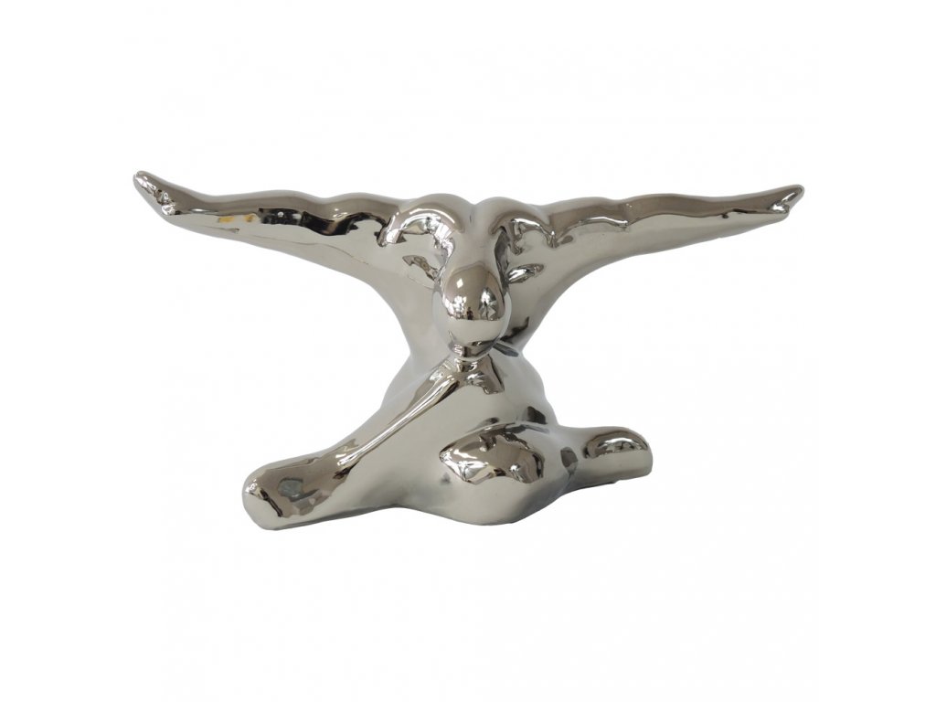 Keramická dekorace ve stříbrné barvě.