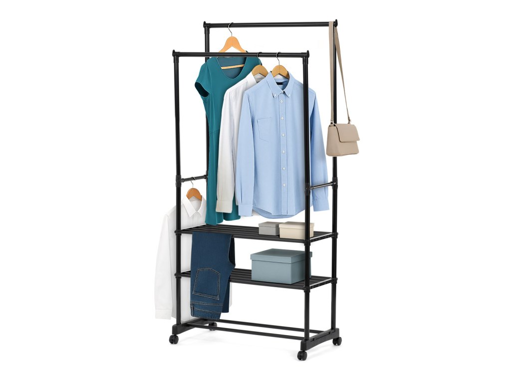Dvě tyče na zavěšení nabízejí dostatek prostoru pro oděvy.