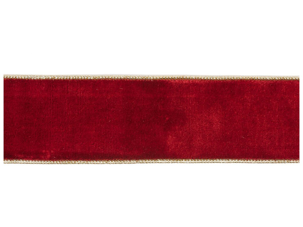 Stuha luxusní sametová červená se zlatým lemem 6,4 cm x 4,5 m