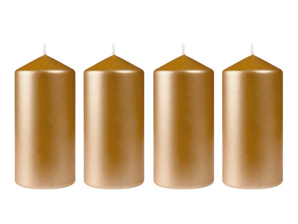 Sada 4 ks svíček z vosku v metalické zlaté barvě.