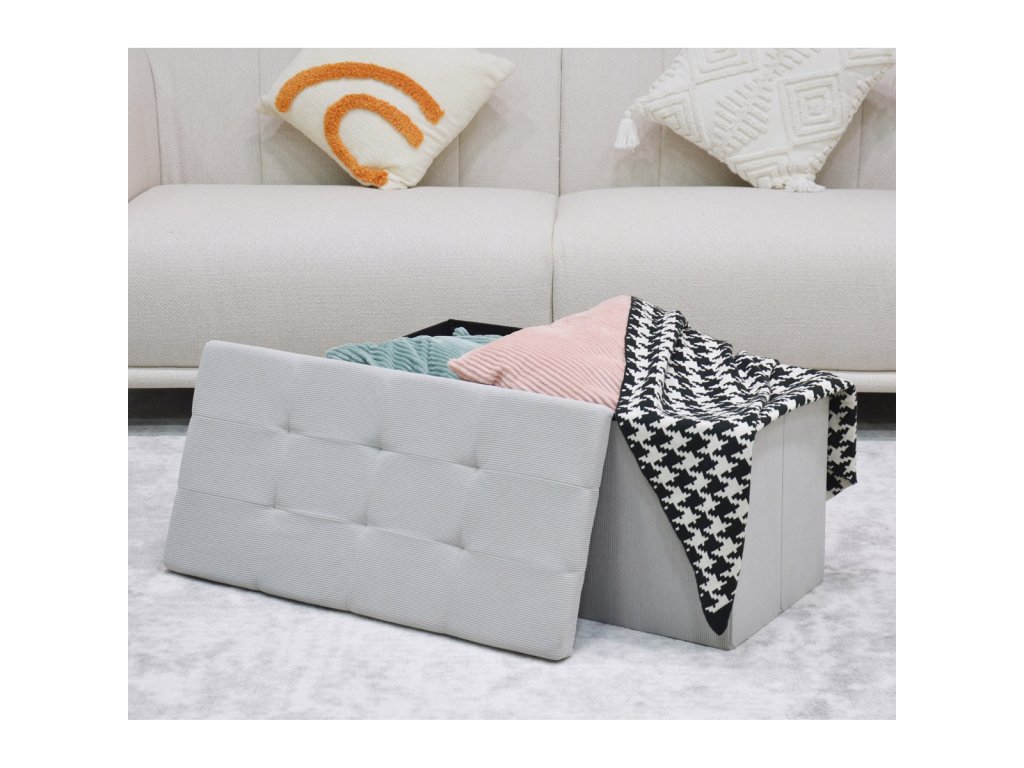Taburet s úložným prostorem krémový / manšestrová látka