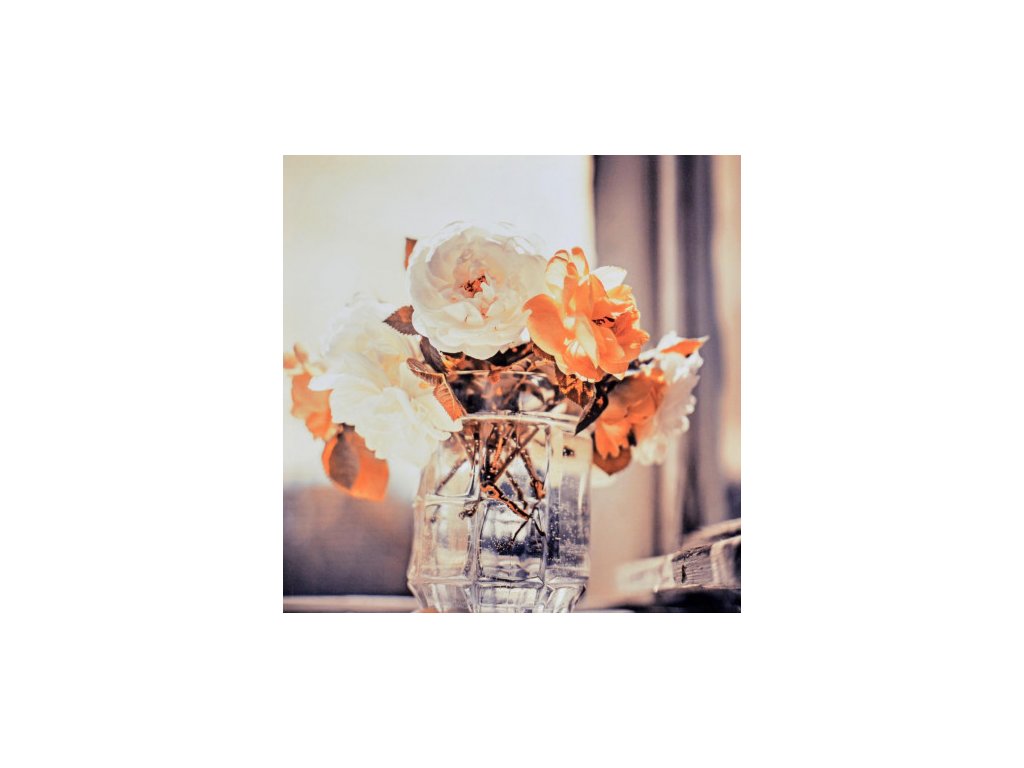 Obraz na plátně s motivem vázy s květinou v rozměru 70 x 70 cm, hloubka rámu 2,5 cm, rozjasní každý kout Vašeho domova.