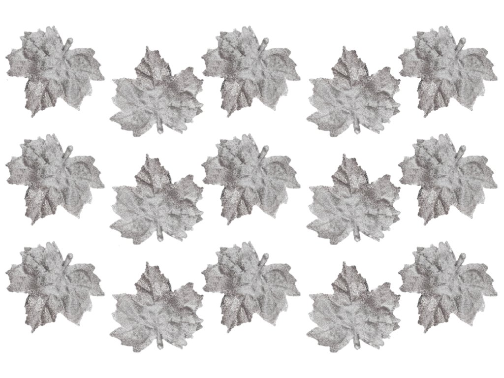 Sada 15 ks dekoračních listů ve stříbrné barvě.