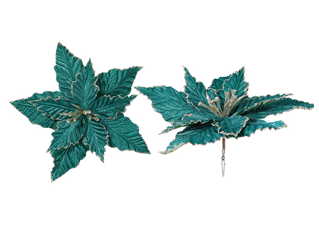 Sada 2 ks dekorací: Květina s klipem zelená a zlatým lemem 30 cm