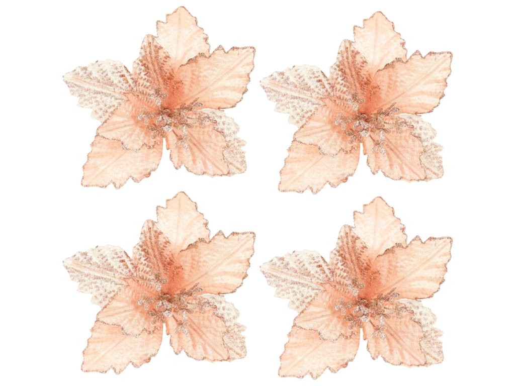 Sada 4 ks květin v jemné růžové barvě se stříbrným lemováním.