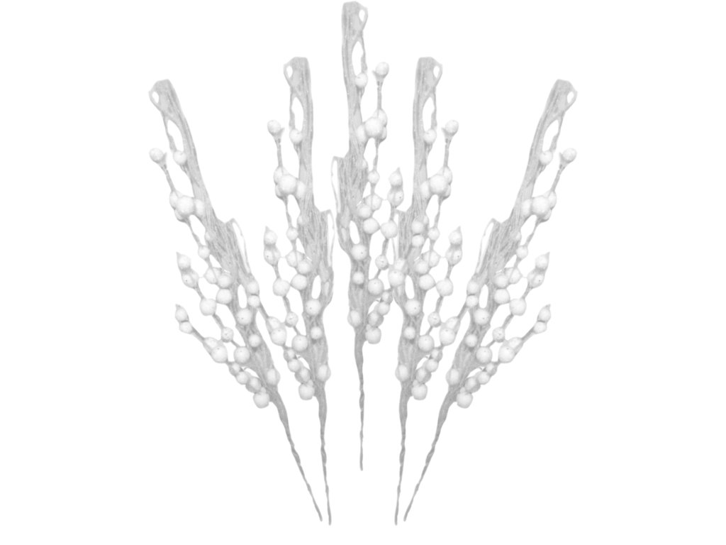 Sada 5 ks dekorací: Větvička s bílými bobulemi a výhonky 73 cm