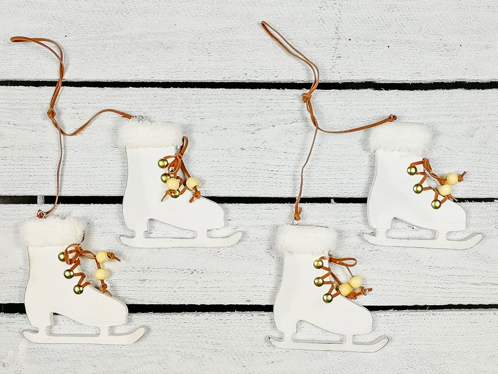 Sada 2 ks dekorací: Dřevěné brusle na zavěšení 11 cm