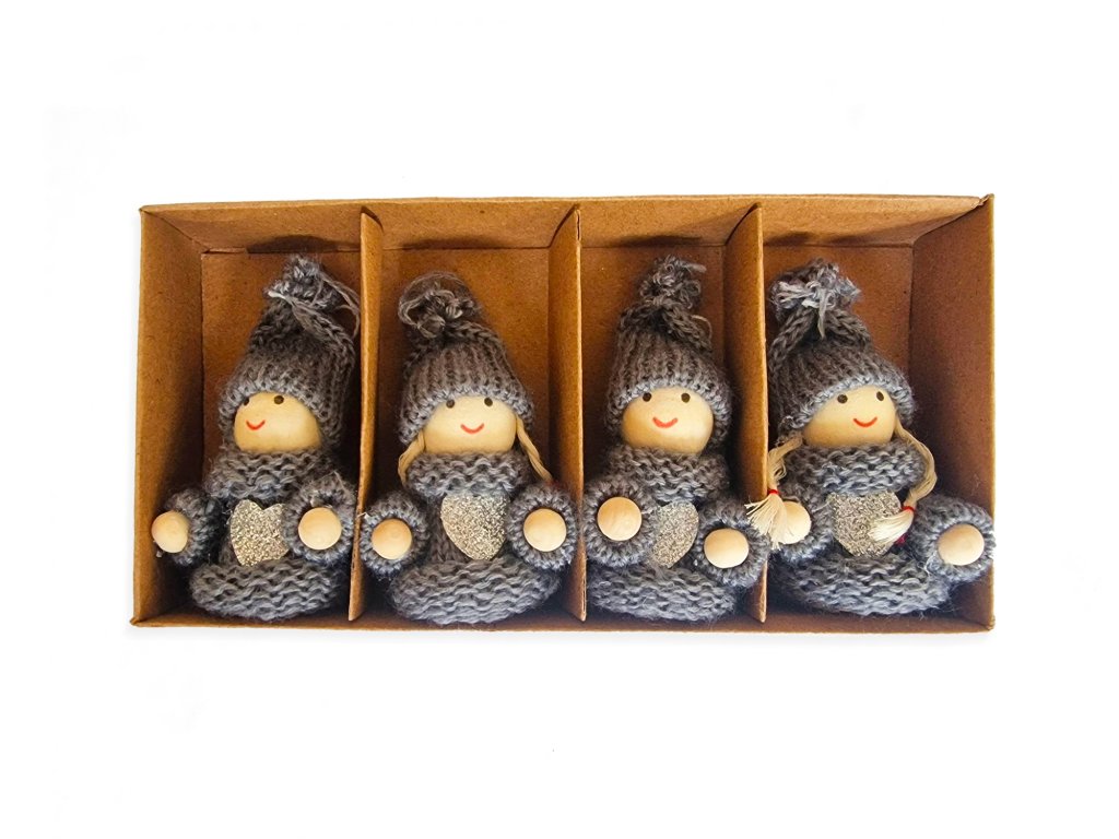 Sada 4 ks textilních postaviček s očkem pro snadní zavěšení kdekoliv v interiéru.