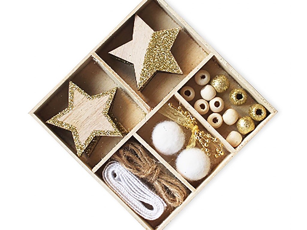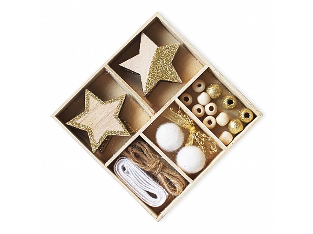 Dřevěná kreativní sada, nejen pro vánoční zdobení v dřevěné krabičce.