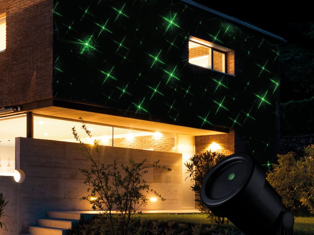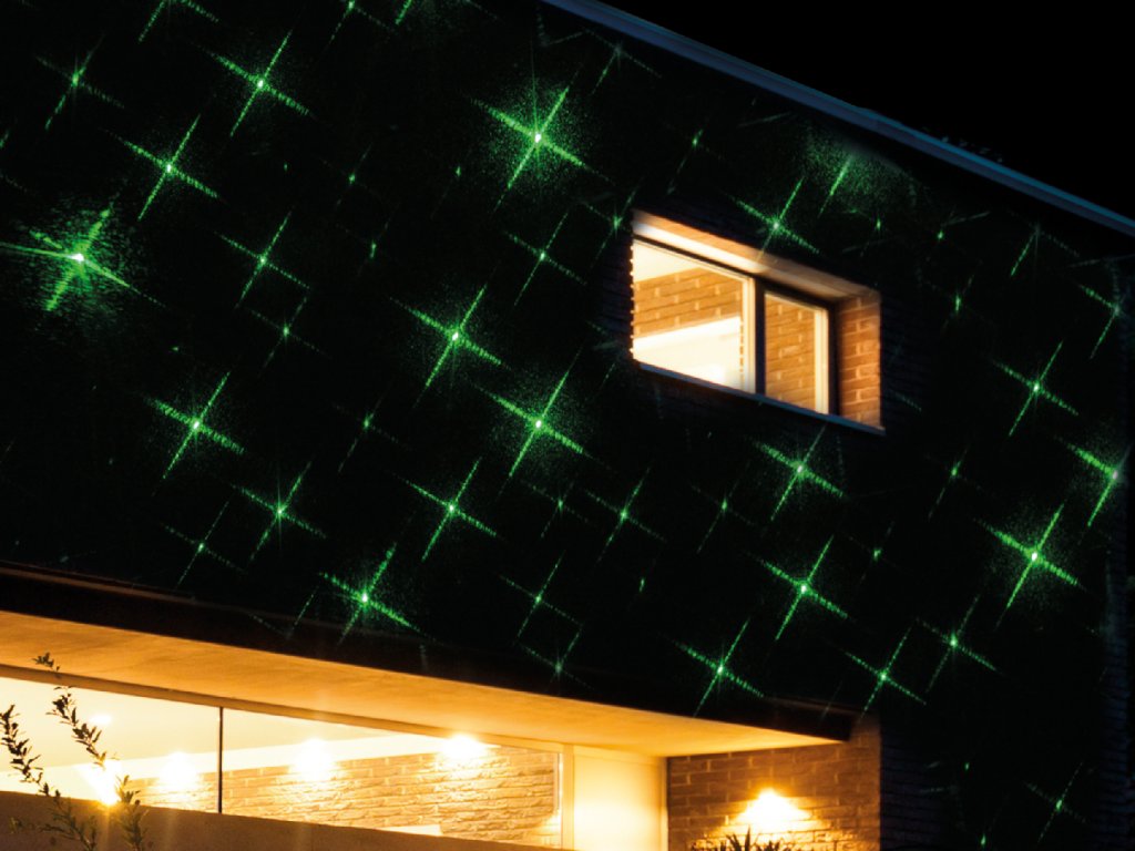 LED vánoční projektor světelný ZELENÉ HVĚZDIČKY - vnitřní i venkovní