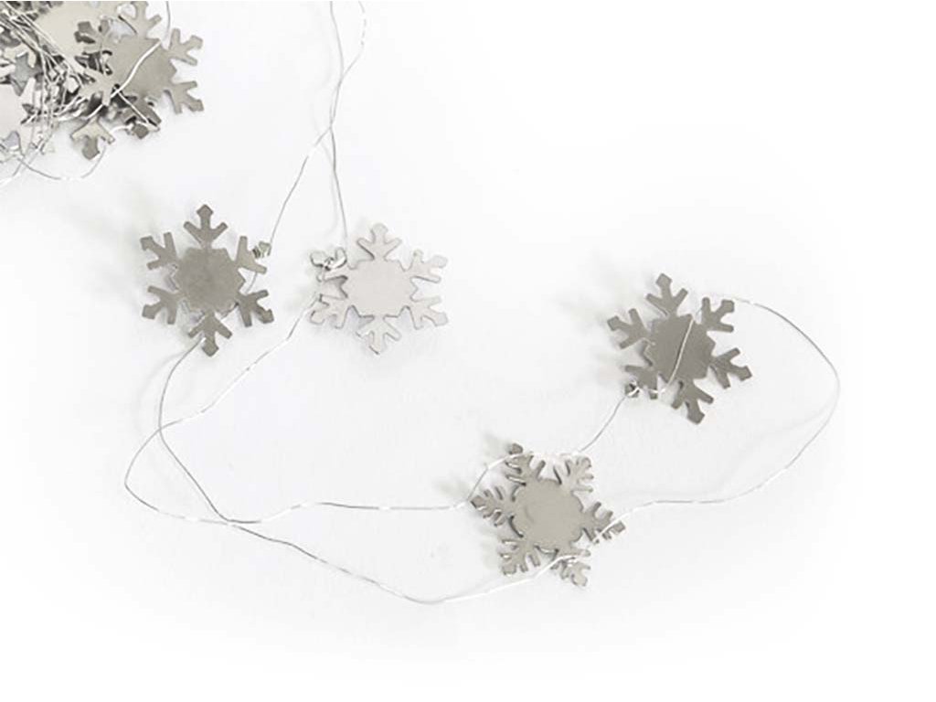 Vánoční řetězy / girlandy se stříbrnými vločkami.