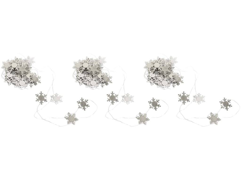 Sada 3 ks dekorací: Řetěz s vločkami stříbrný 2 m