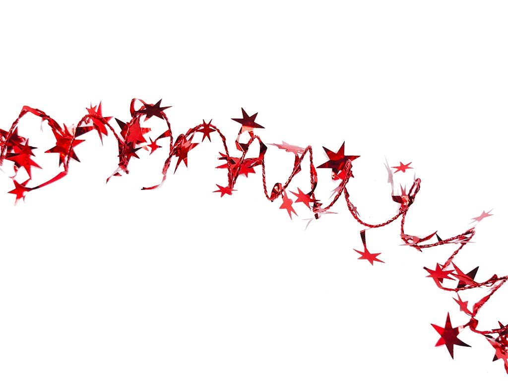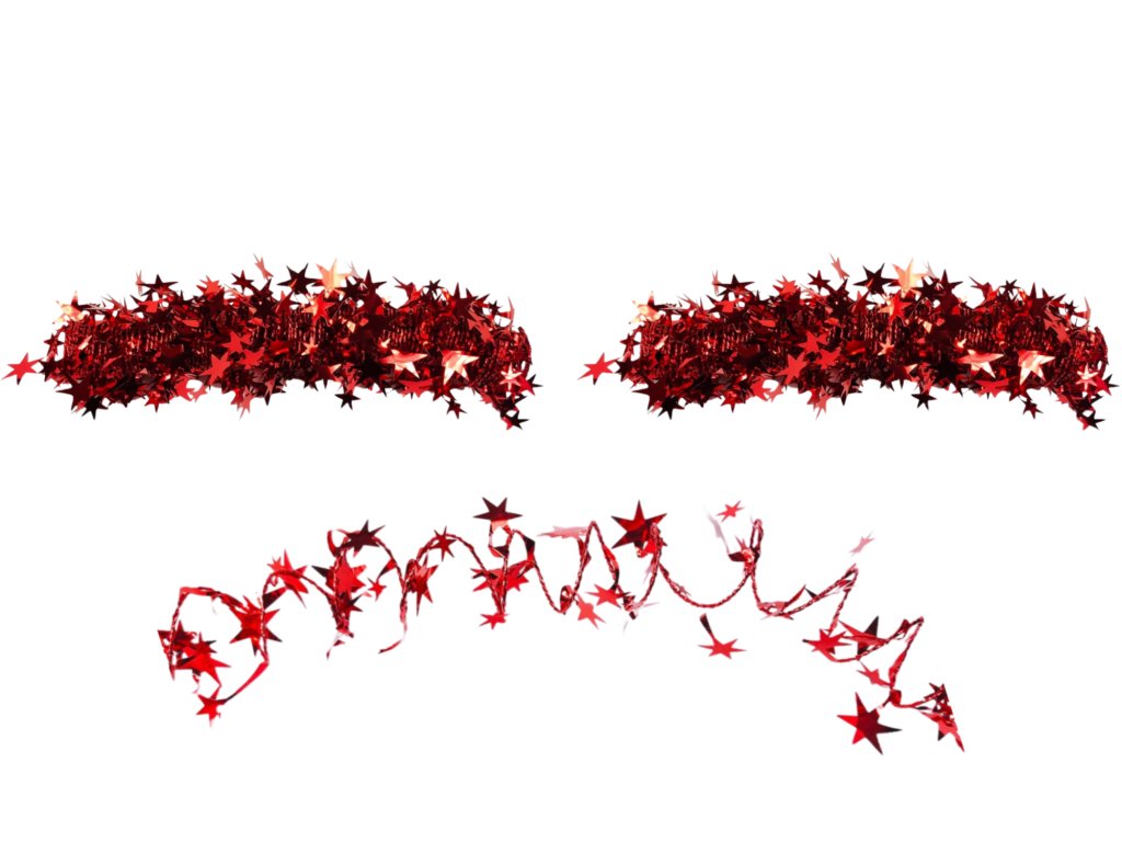 Vánoční řetězy / girlandy v červené barvě s hvězdičkami.