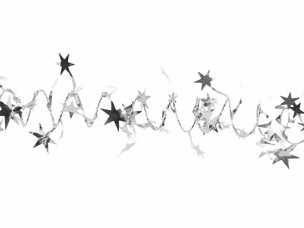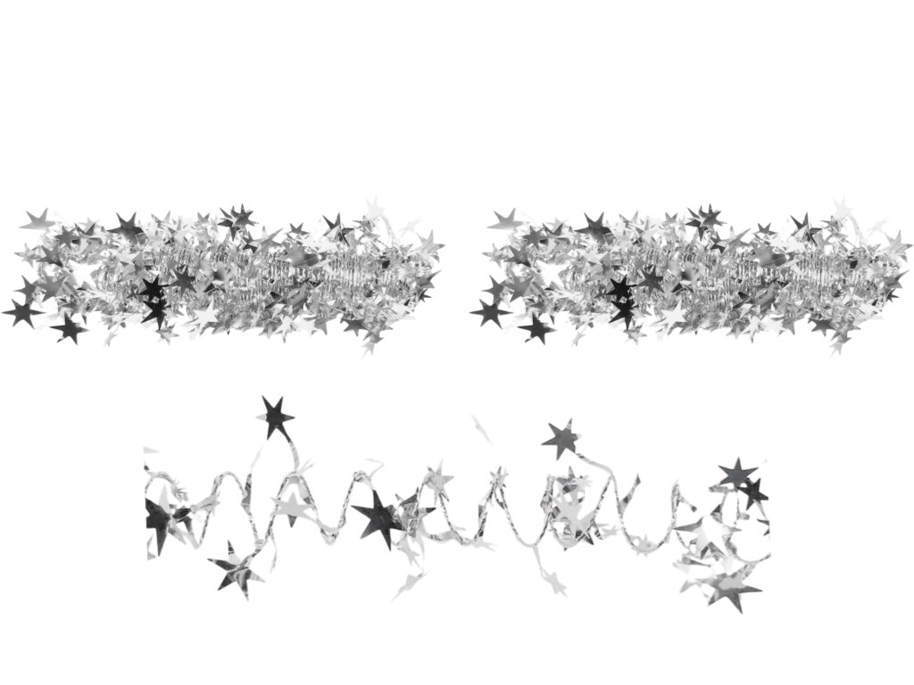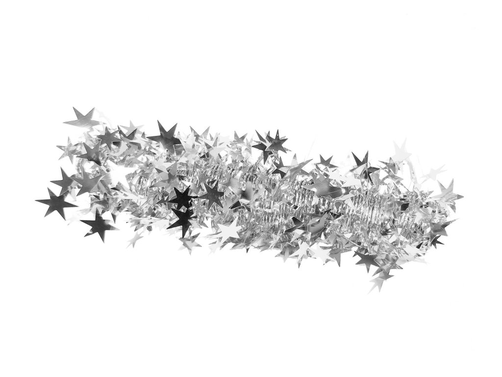 Vánoční řetězy / girlandy ve stříbrné barvě s hvězdičkami.