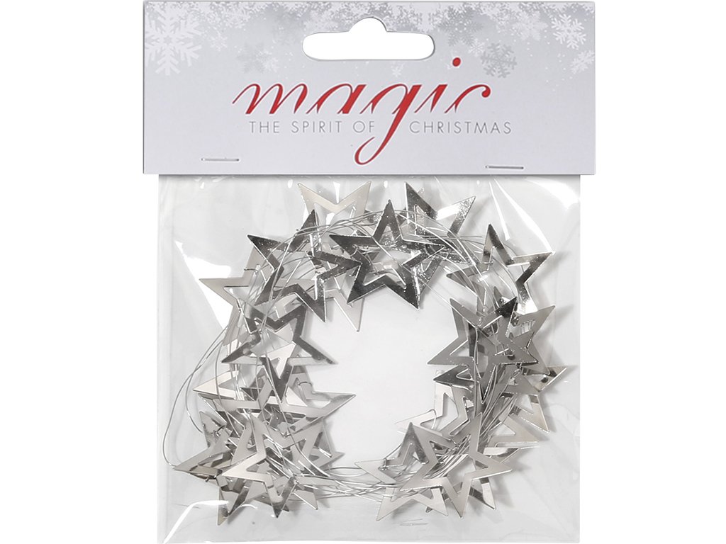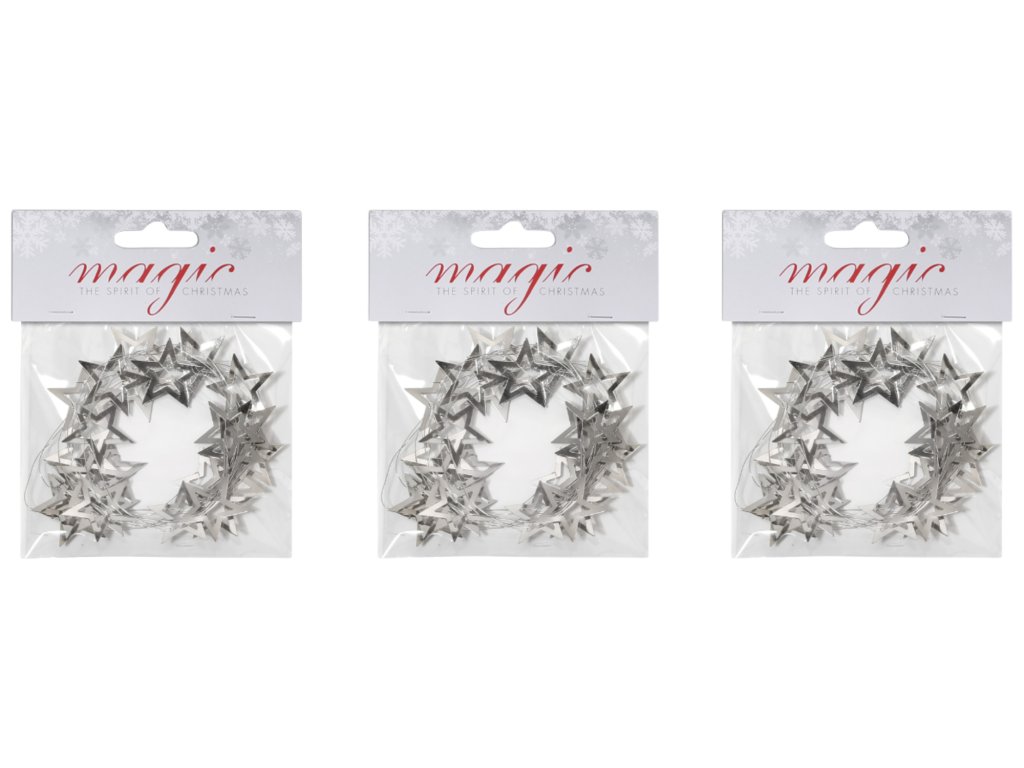 Sada 3 ks dekorací: Řetěz stříbrný s hvězdičkami 2 m