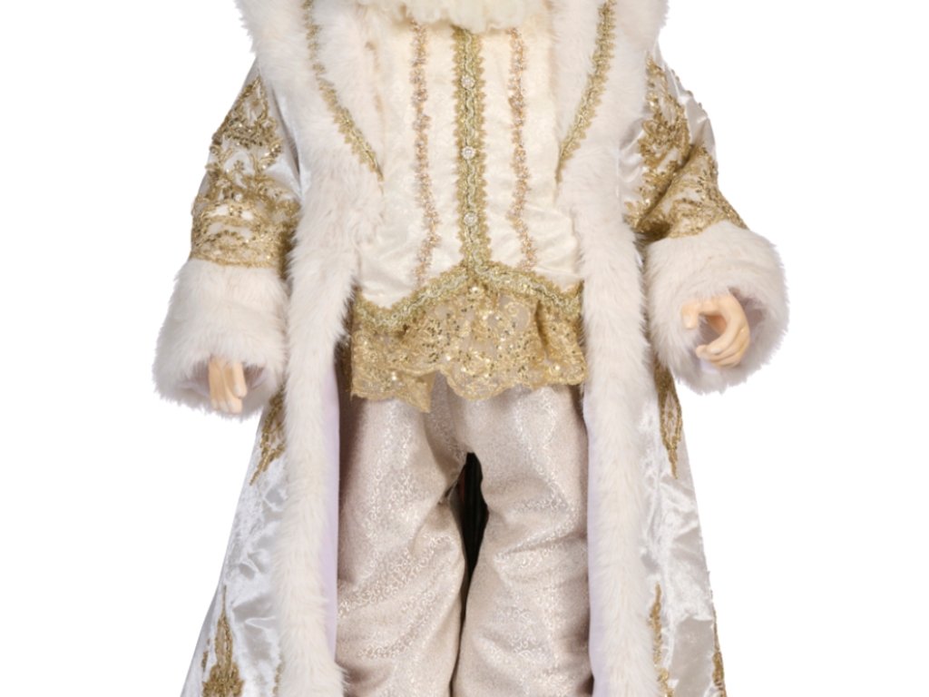 Sada zahrnuje majestátní postavu Santy v životní velikosti s výškou 163 cm, který je oblečený do královského roucha v krémové a zlaté barvě.