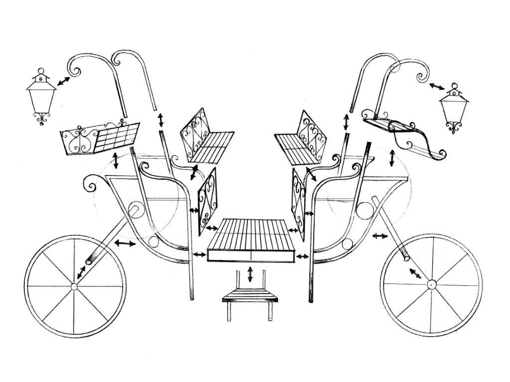 Tento otevřený kočár, vyrobený z kovu, je zdobený elegantními spirálovitými ornamenty a dvěma stylovými lucernami na každé straně, které evokují starobylou vánoční romantiku.