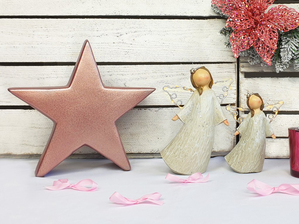 1 x dekorační hvězda 24 cm, barva růžová, materiál keramika