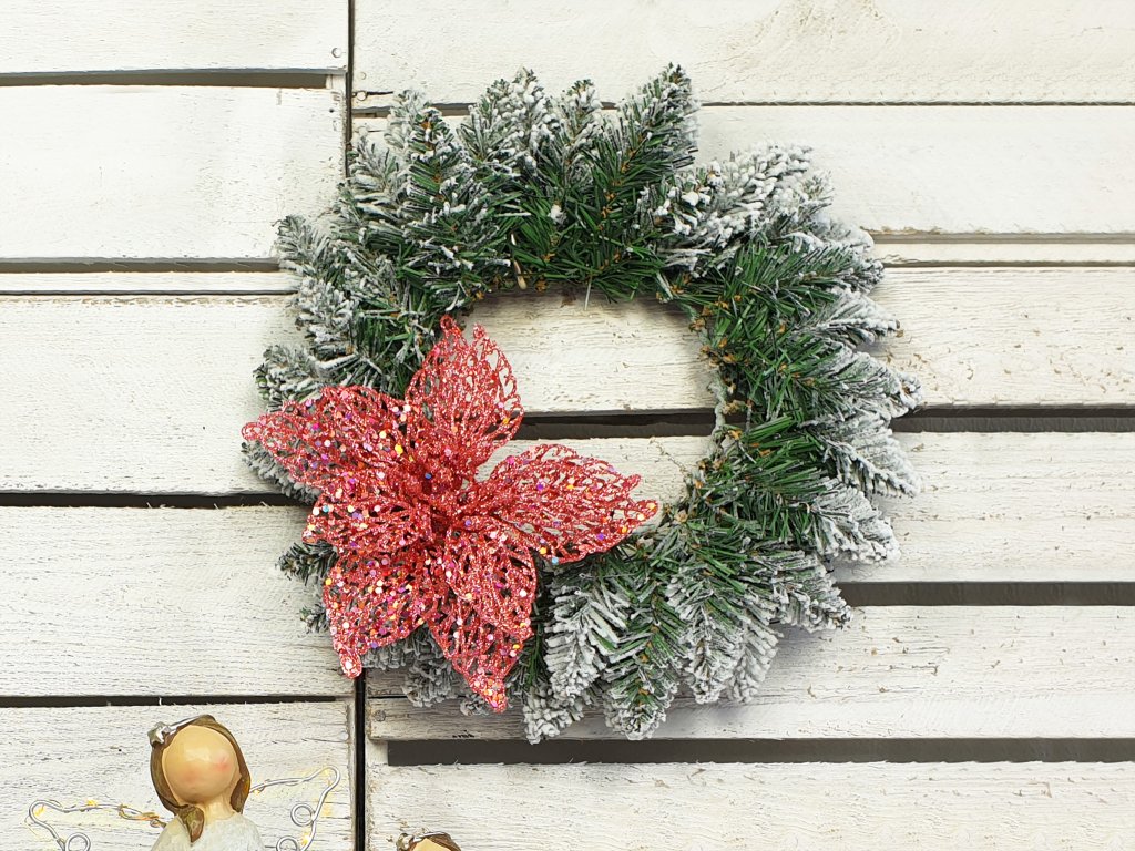 1 x ozdobený věnec zasněžený 30 cm - RUČNÍ VÝROBA