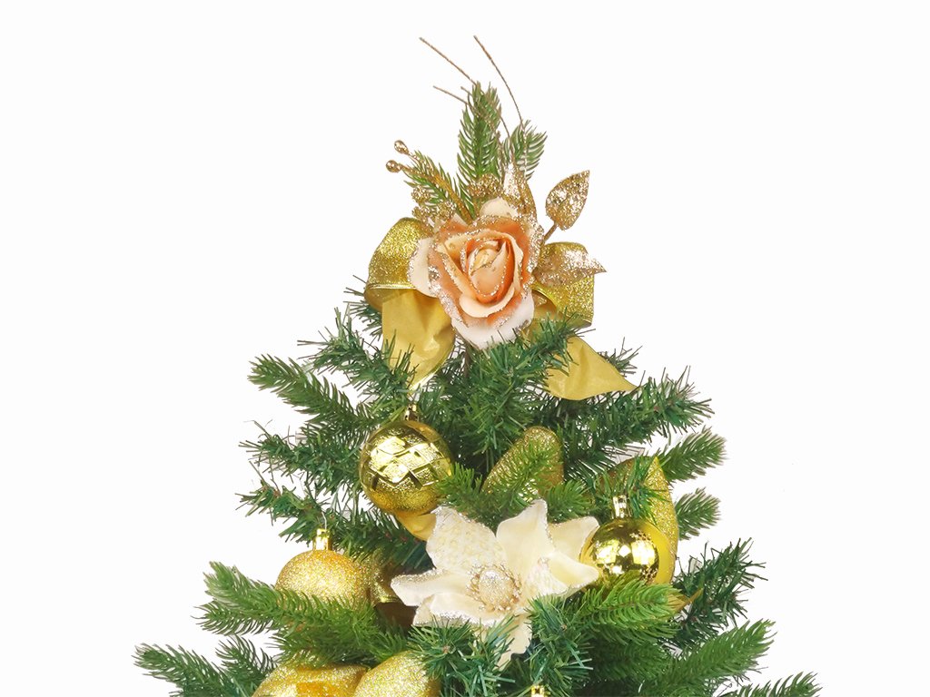 Špičku stromečku zdobí elegantní růžička s champagne lemem.