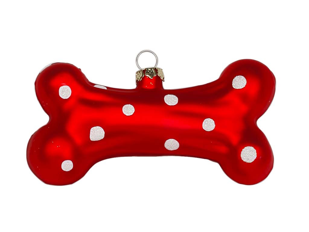4 x ozdoba psí kost 10 cm, barva červeno-stříbrná, materiál sklo - RUČNÍ VÝROBA