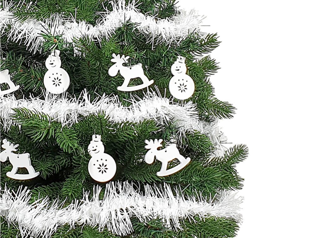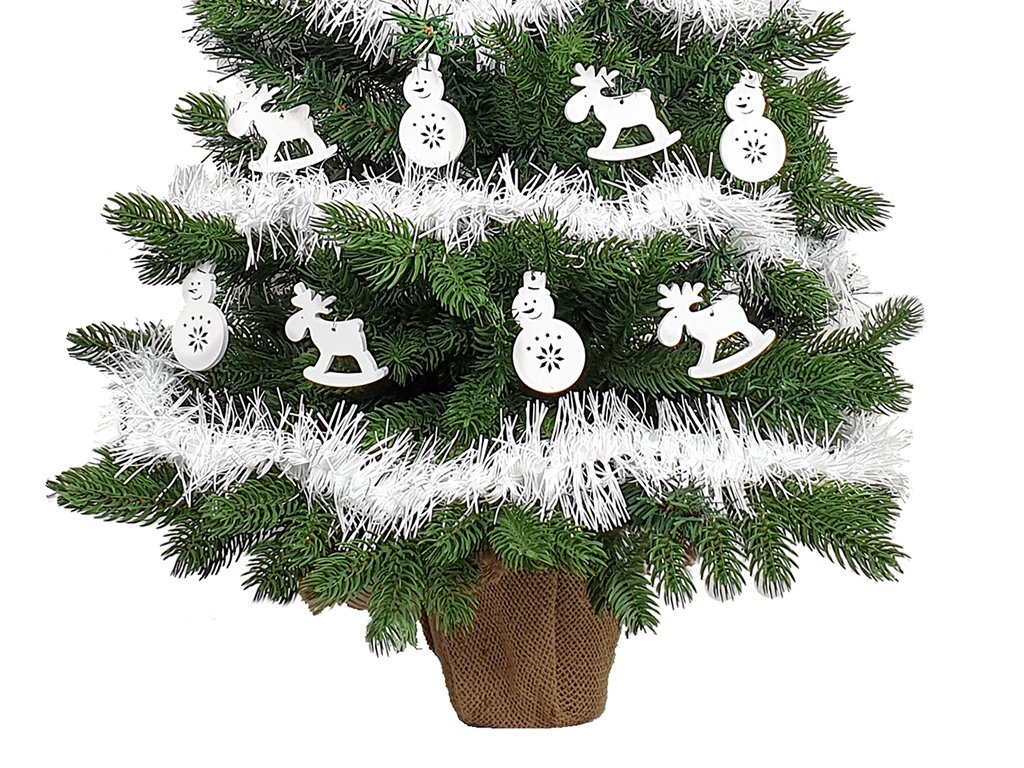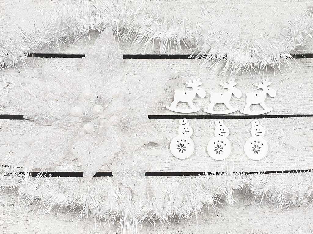 24 x ozdoby s motivem sněhulák a sob 5,5 -6,5 cm, barva bílá, materiál dřevo