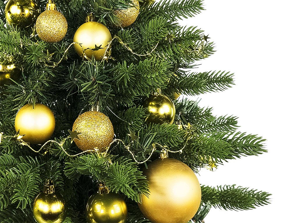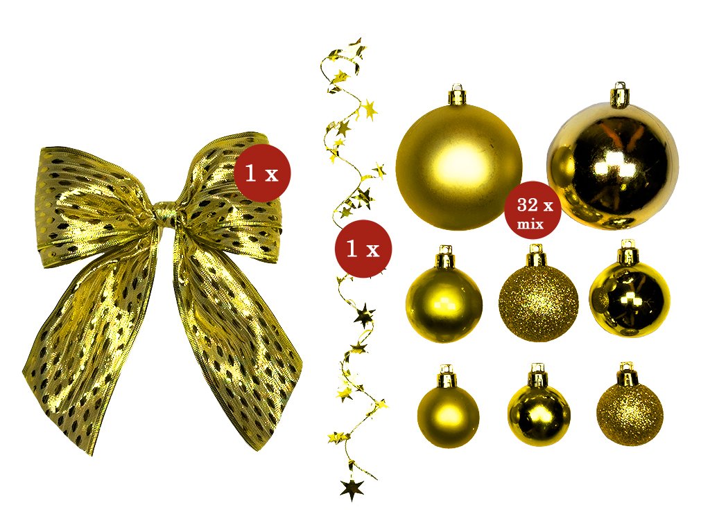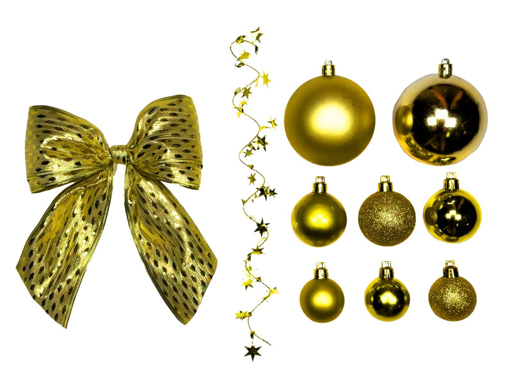 Elegantní sada, složená výhradně ze zlatých ozdob a dekorací promění Váš stromek v zářivý klenot.