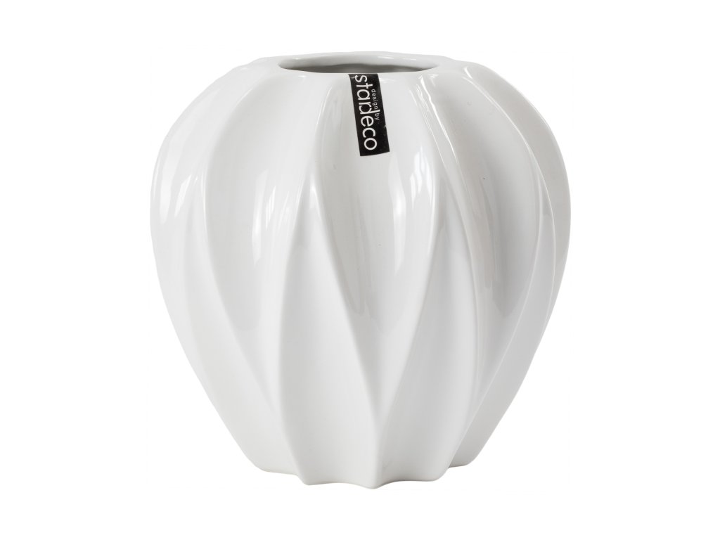Lesklý povrch v kontrastu s čistou bílou barvou činí vázu výrazným a stylovým doplňkem do každého interiéru, ideálním pro menší květinová aranžmá nebo jako dekorativní prvek na poličce či stolu.