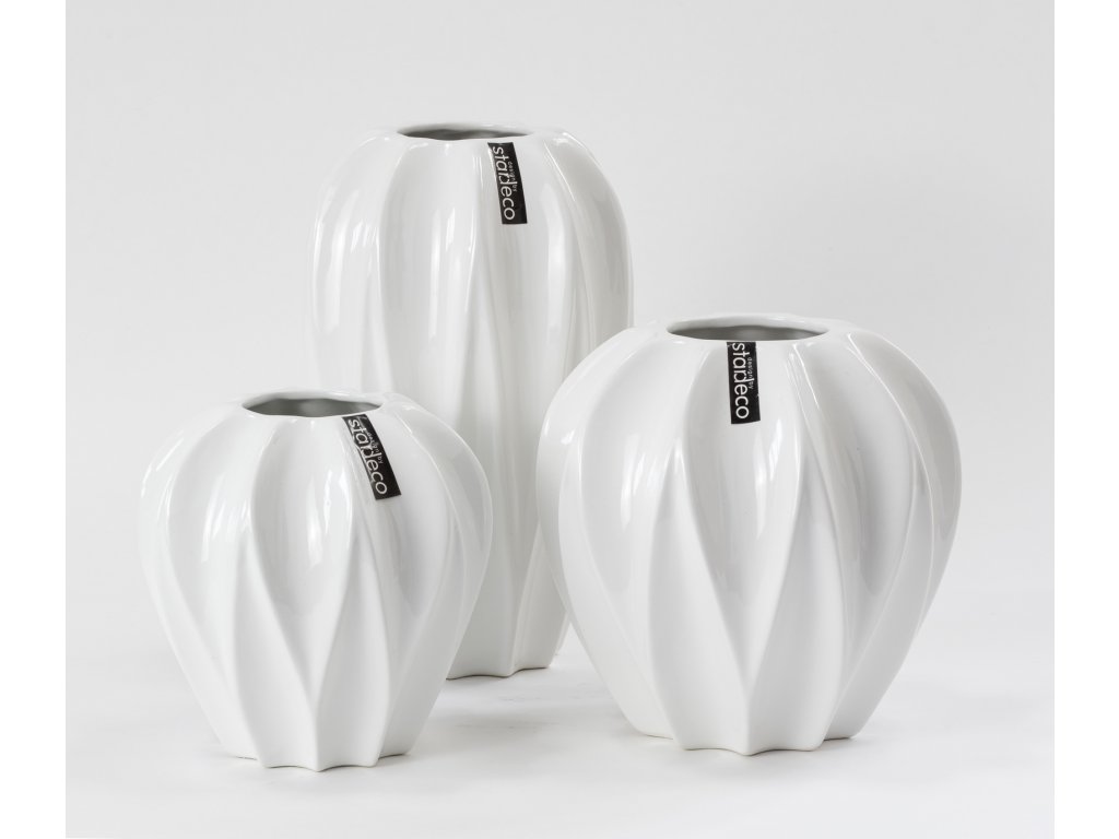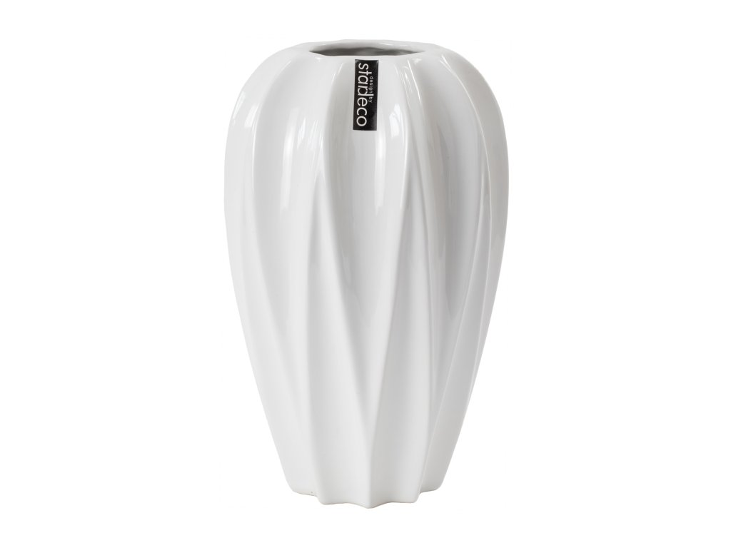 Lesklý povrch v kontrastu s čistou bílou barvou činí vázu výrazným a stylovým doplňkem do každého interiéru, ideálním pro menší květinová aranžmá nebo jako dekorativní prvek na poličce či stolu.