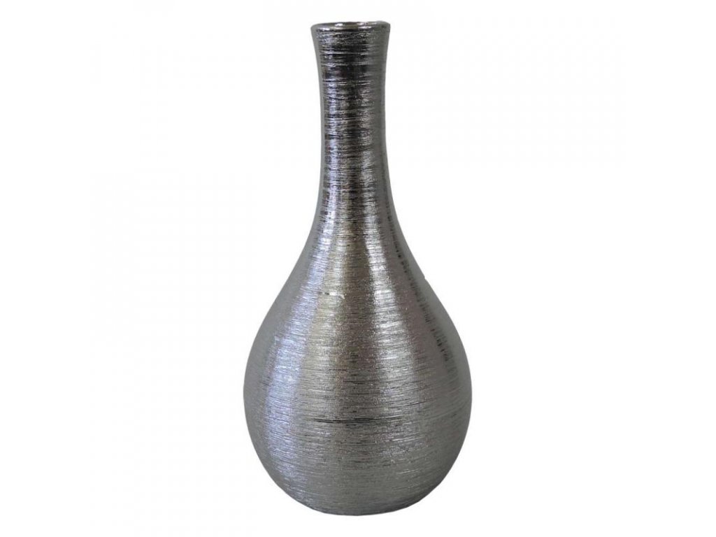 Krásná keramická váza ve stříbrné barvě s moderní strukturou.