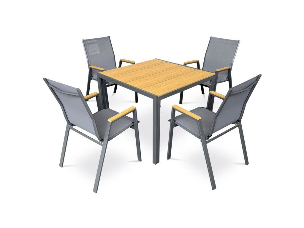 Polywoodové područky dodávají přírodní akcent, který krásně kontrastuje s minimalistickým designem.